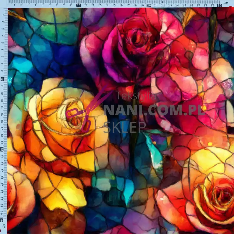 witrażowe róże-Dresówka Pętelka 235g/m2