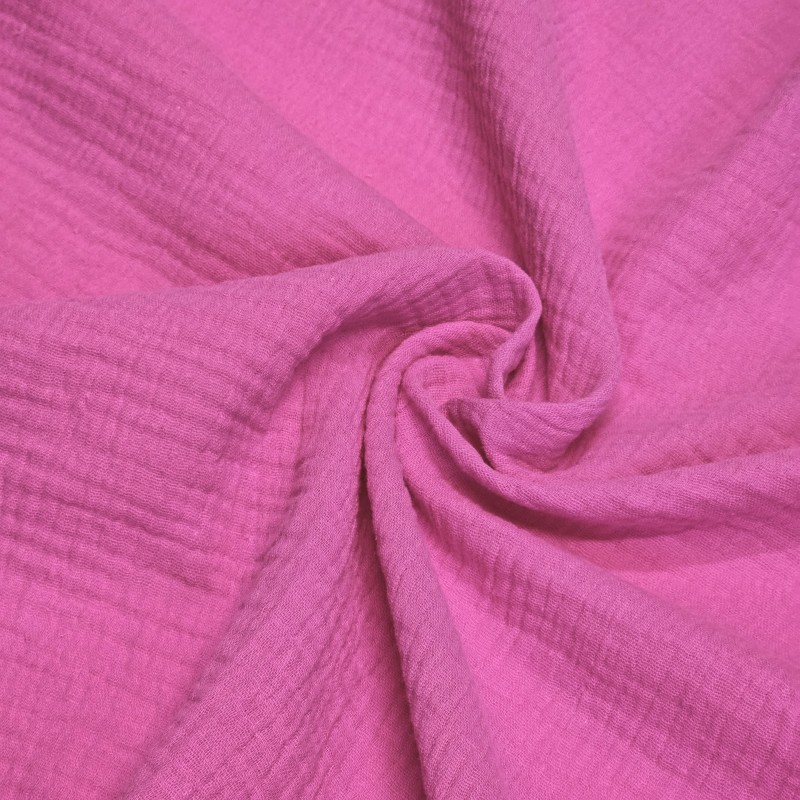 Muślin double gauze to podwójna warstwa cienkiego, marszczonego muślinu, zszyta punktowo, dzięki czemu wygląda jak jedna tkanina, ale jest grubsza, bardziej miękka i jeszcze bardziej puszysta.